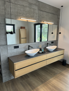 Unsere hauseigene Holzmanufaktur ermöglicht es uns, individuelle Badmöbel nach Ihren Wünschen anzufertigen. Besonders stolz sind wir auf unsere exklusiven Möbel aus hochwertigem Zirbenholz. Dieses Holz ist nahezu unzerstörbar, zeitlos und verleiht jedem Bad eine warme, natürliche Atmosphäre. Zirbenholz hat nicht nur eine außergewöhnliche Haltbarkeit, sondern trägt auch zu einem gesunden Raumklima bei, da es antimikrobielle Eigenschaften besitzt. Mit Möbeln aus unserer Manufaktur erhalten Sie Badmöbel, die ein Leben lang halten.